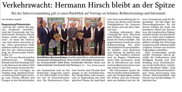 Am 29. Januar 2026 fand die Jahreshauptversammlung der Verkehrswacht Regensburg mit Neuwahlen in der Kloster Gaststätte in Pielenhofen statt.