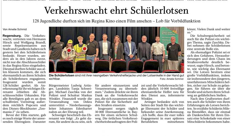 Ehrung der Schüler- und Buslotsen im Regina Filmtheater Beitrag gepostet am 11. März 202611. März 2026Beitrag gepostet in Allgemein Von Verkehrswacht Regensburg